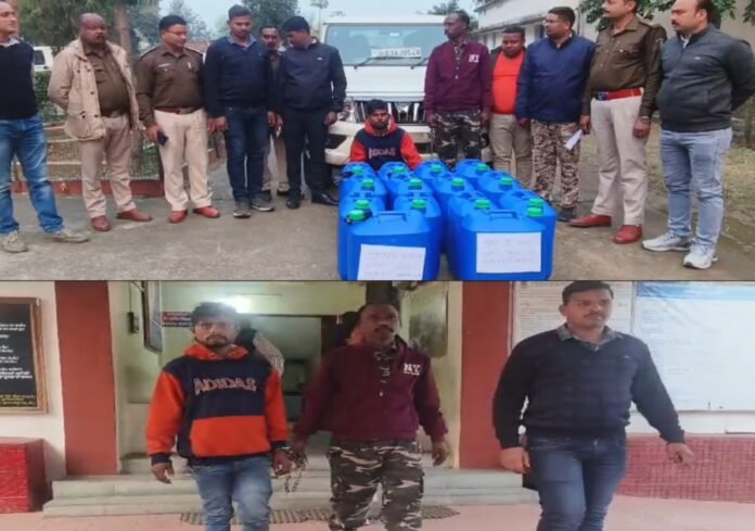 बिट्टू सिहं राजपूत@सरगुजा/ बलरामपुर. बलरामपुर पुलिस अवैध शराब तस्करों को गिरफ्तार किया है . दरअसल एसपी बलरामपुर ने जिले में सभी थाना प्रभारियों को अवैध शराब की तस्करी पर अंकुश लगाने के लिए शख्त निर्देश दिए है।इसी कड़ी में मंगलवार को रामानुजगंज पुलिस को मुखबिर से सूचना मिली की एक बोलेरो वाहन से 560 लीटर स्प्रिट ले जाया जा रहा है .जिसपर पुलिस ने तत्परता दिखाते हुए बोलेरो वाहनको जब्त कर लिया। जब्त बोलेरो वाहन से कुल 14 गैलन स्प्रिट जब्त की गई है। वाहन और स्प्रिट की कीमत 19 लाख 20 हजार रुपए बताया जा रहा है।