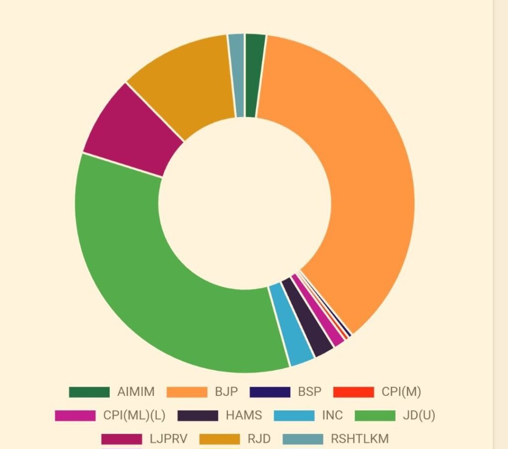 इस बार एनडीए संयुक्त रूप से 206 सीटों तक पहुंचता दिख रहा है, जो एक नया रिकॉर्ड है। वहीं, पूरे महागठबंधन को मिलकर मात्र 31 सीटें मिलती नजर आ रही हैं।