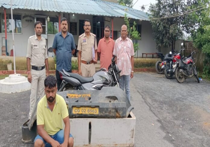 हाथोर समाचार, सरगुजा।वरिष्ठ पुलिस अधीक्षक सरगुजा के दिशा-निर्देशन में थाना मणीपुर पुलिस को बड़ी सफलता मिली है। जिला अस्पताल अंबिकापुर और दरिमा सामुदायिक स्वास्थ्य केंद्र से एम्बुलेंस चोरी के मामले में मुख्य आरोपी को गिरफ्तार कर लिया गया है। आरोपी की निशानदेही पर चोरी की गई एम्बुलेंस का टूटा-फूटा हिस्सा, 5,000 रुपये नकद, घटना में प्रयुक्त मोबाइल फोन और होंडा मोटरसाइकिल जब्त की गई है। मामले में शामिल अन्य आरोपी अभी भी फरार हैं, जिनकी तलाश पुलिस सरगर्मी से कर रही है।