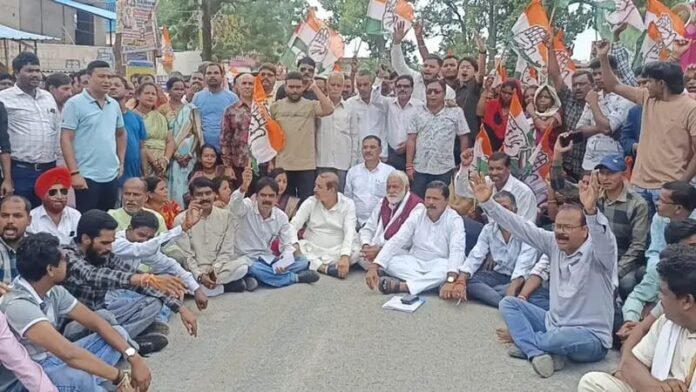 दैनिक हाथोर समाचार,अम्बिकापुर। खरीफ सीजन में खाद की भारी कमी, कालाबाजारी, एग्री स्टेट पंजीकरण में लापरवाही और फसल बीमा में मनमानी के खिलाफ जिला कांग्रेस कमेटी सरगुजा ने शुक्रवार को ग्राम डिगमा में जोरदार धरना-प्रदर्शन किया। जिला अध्यक्ष बालकृष्ण पाठक के नेतृत्व में बनारस रोड पर सांकेतिक चक्काजाम कर सरकार के खिलाफ नारेबाजी की गई। कांग्रेस ने सात सूत्रीय मांगों के साथ मुख्यमंत्री के नाम जिला प्रशासन को ज्ञापन सौंपा। किसानों की नाराजगी का मुख्य कारण यूरिया और डीएपी खाद की कमी बताई गई।