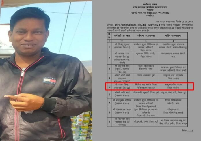 दरअसल, विभाग का ध्यान व्यवस्था सुधारने पर कम और अपने ही कर्मचारियों की कुर्सी बचाने पर ज्यादा है। सिविल सर्जन कार्यालय सूरजपुर में पदस्थ सहायक ग्रेड-2 (लेखपाल) संजय सिन्हा का 26 जून 2025 को प्रदेश स्तर से तबादला सामुदायिक स्वास्थ्य केंद्र पटना, जिला कोरिया किया गया था। यह उनका गृह क्षेत्र भी है। बावजूद इसके वे अब तक सूरजपुर से हटने को तैयार नहीं हैं।