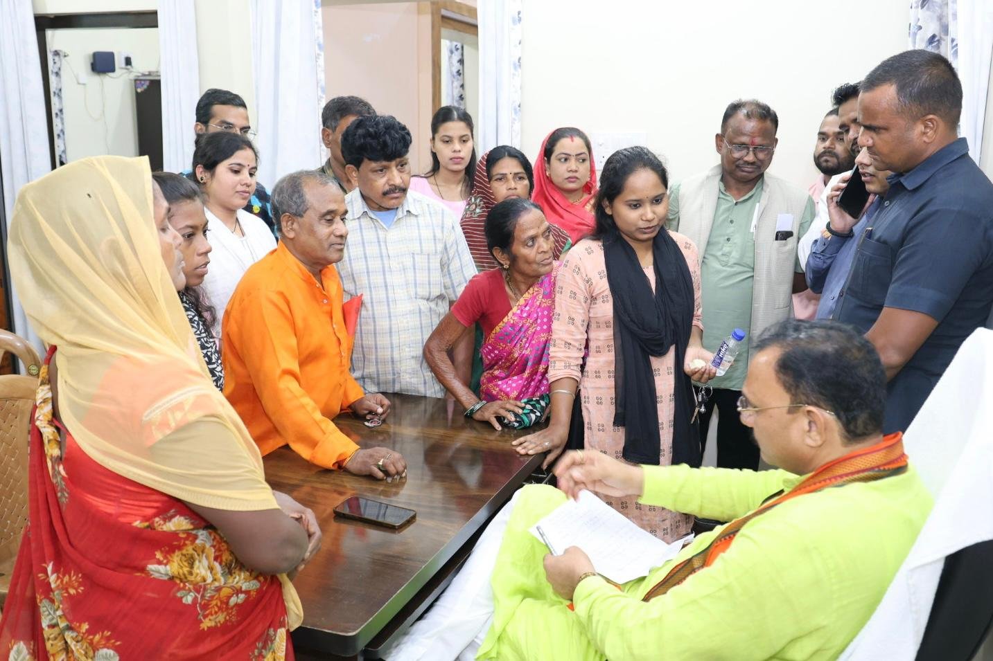 हाथोर समाचार ,चिरमिरी । प्रदेश के स्वास्थ्य मंत्री श्याम बिहारी जायसवाल ने रविवार को चिरमिरी नगर निगम क्षेत्र के हल्दीबाड़ी कार्यालय में आम जनता से आत्मीय मुलाकात की। जनदर्शन कार्यक्रम के दौरान सैकड़ों नागरिकों ने मंत्री के समक्ष पानी, बिजली, सड़क, स्वास्थ्य, पेंशन, राशन, आवास और शासकीय योजनाओं से जुड़ी समस्याएं रखीं, जिन पर उन्होंने तत्काल संज्ञान लेते हुए संबंधित अधिकारियों को निर्देशित किया।