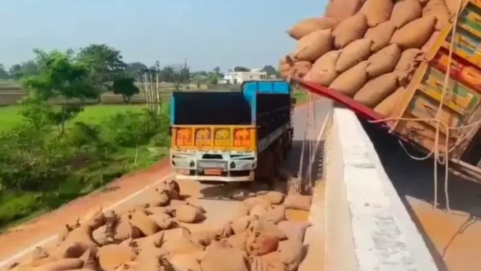 धमतरी । छत्तीसगढ़ में रविवार को रफ्तार का कहर देखने को मिला. यहां के बायपास ओवरब्रिज पर एक ट्रक बेकाबू होकर पलट गया. ट्रक ओवरब्रिज की दीवार पर टिक गया. इसकी वजह से ट्रक में लदा धान धमतरी के सर्विस रोड पर बिखर गया. इस वजह से लोगों को काफी दिक्कत भी हुई।